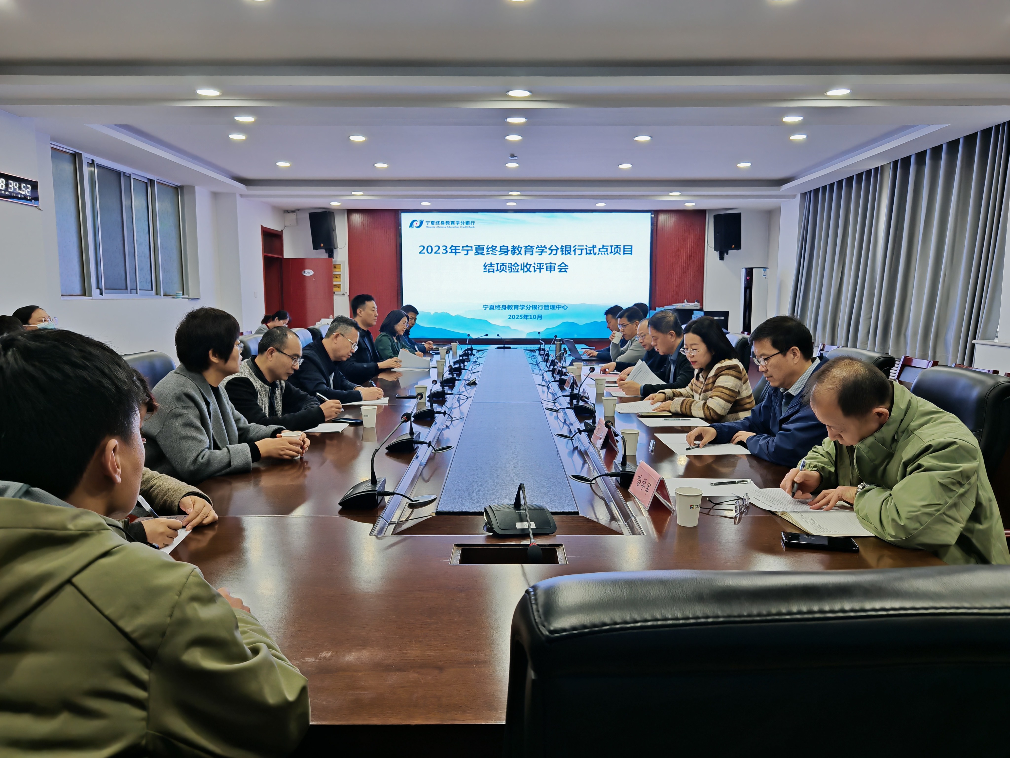 2025年10月24日上午,2023年宁夏终身教育学分银行试点项目结项验收评审会在金凤校区B207会议室顺利召开。自治区教育厅职业与成人教育处副处长高文雄、宁夏职业技术大学(宁夏开放大学)纪委书记马建荣出席会议并发表讲话。参会人员包括项目评审专家、项目负责人及学分银行管理中心全体工作人员。会议由宁夏终身教育学分银行管理中心主任杨晓燕主持。