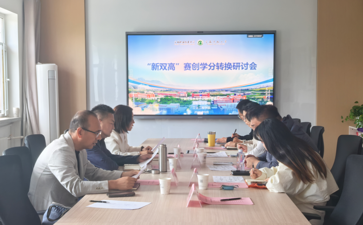 9月26日上午,“新双高”赛创学分转换研讨会在金凤校区四楼会议室召开。创新创业学院院长陈冲、副院长马辉及相关工作人员,远程学习支持服务中心(宁夏终身教育学分银行管理中心)主任杨晓燕及相关工作人员,工业工程学院教授苏红磊参会,围绕学校“新双高”建设任务,聚焦赛课融通育人机制改革及赛创学分转换路径探索展开深入研讨,会议由杨晓燕主任主持。